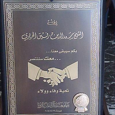 تكريم مميز من دولة الرئيس سعد الدين الحريري لعبير جبير شبارو إبراهيم