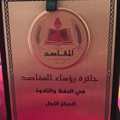 فاز الطالب محمد هاني شبارو من كلية خالد بن الوليد – الحرج – المقاصد بالمرتبة الأولى في مسابقة جائزة رؤساء المقاصد في حفظ و تلاوة القرآن الكريم.